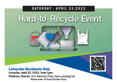 The City of Lafayette invites Lafayette residents to the first-ever Hard-To-Recycle event in partnership with Eco-Cycle and Boulder County Hazardous Waste.