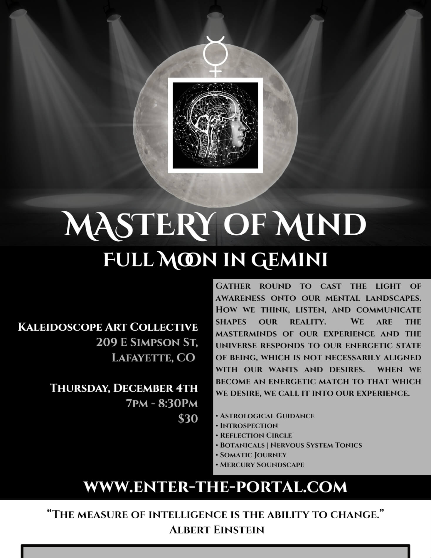 Gather round to cast the light of awareness onto our mental landscapes. How we think, listen, and communicate shapes our reality. We are the masterminds of our experience and the universe responds to our energetic state of being, which is not necessarily aligned with our wants and desires. when we become an energetic match to that which we desire, we call it into our experience.