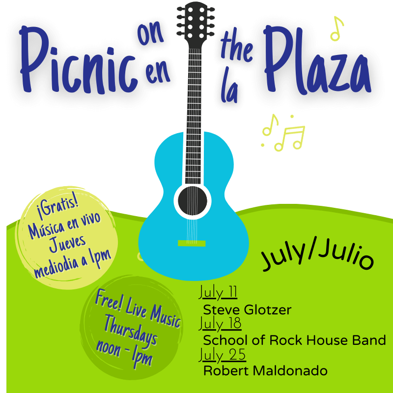 Bring your picnic lunch, something to sit on, and join us at Picnic on the Plaza, featuring free, live music on the lawn. Each week will feature a different musician to please a variety of tastes.