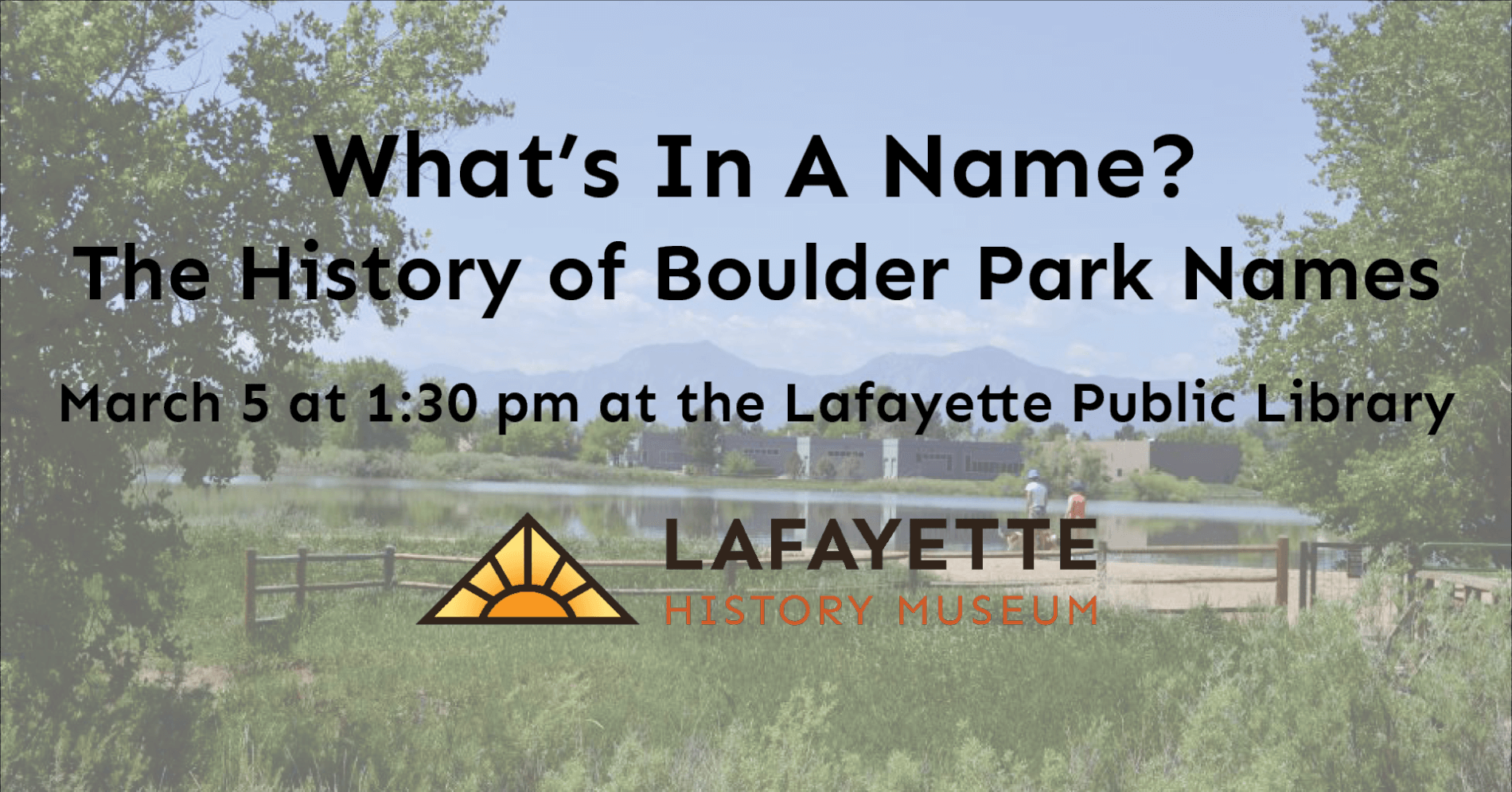 Place names, or toponyms, mark and define our landscapes. In Boulder, city park names reflect the history of the city and its peoples. Moreover, they present a certain image of the city and its values.